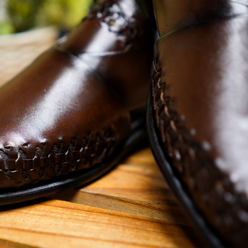 The upper is carefully hand-stitched with intricate woven detailing that enhances its authentic appeal. A strong leather strap with a side buckle ensures a secure and adjustable fit, while the cushioned sole provides long-lasting comfort for daily wear. Its sturdy construction makes it ideal not only for festive occasions and weddings but also for regular use.
