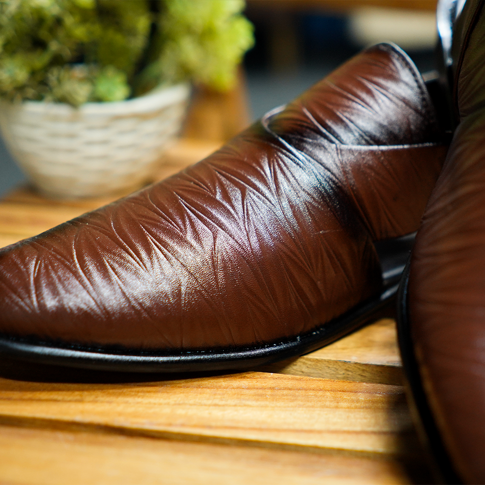 Experience the perfect blend of tradition style and comfort with our Classic Lining Brown Leather Peshawari Chappal. Expertly handcrafted from premium brown leather each pair reflects the rich heritage of Peshawari footwear while offering modern durability and comfort. The soft lining provides all-day ease making it ideal for long hours of wear without compromising style.